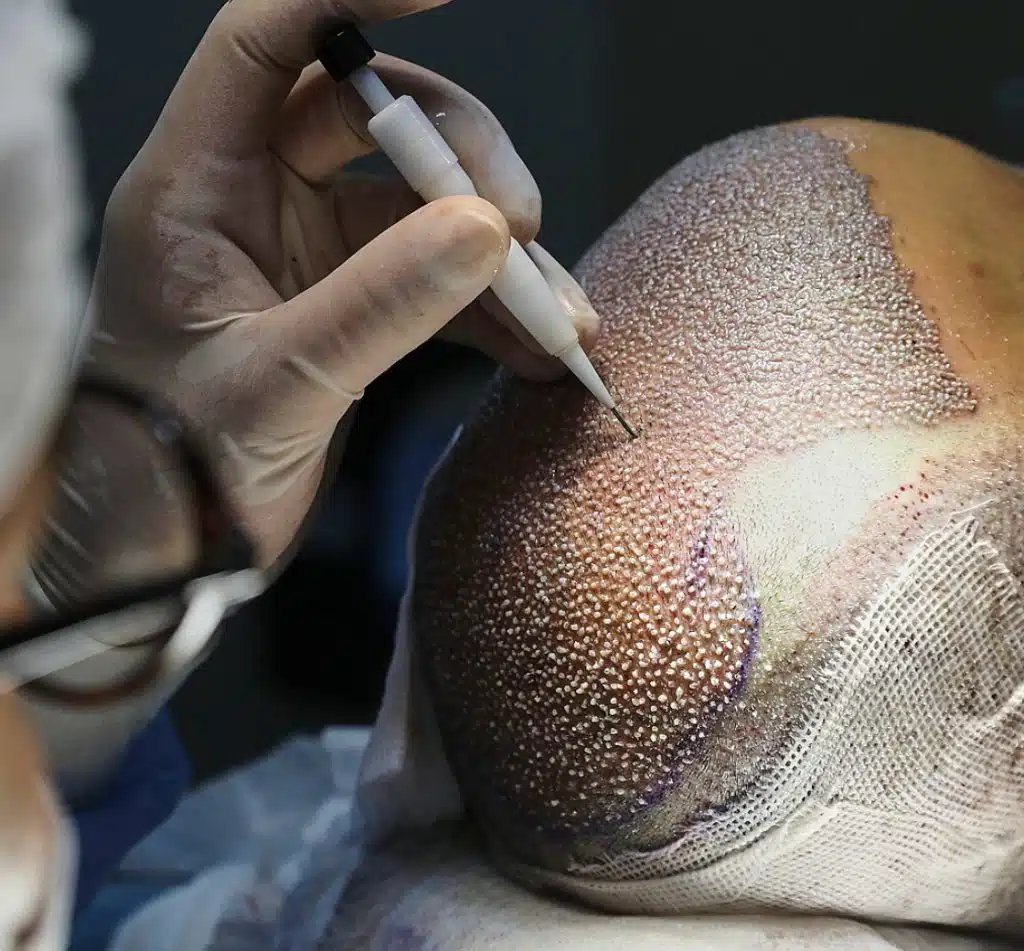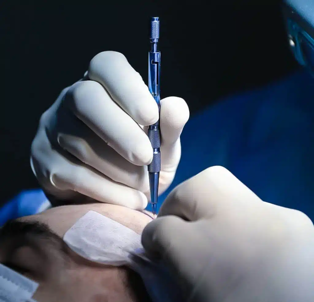 L’extraction des follicules capillaires (FUE) consiste à prélever individuellement les unités folliculaires à l’aide d’un micro-instrument de précision. Elle permet une cicatrisation rapide, sans cicatrice linéaire, avec un résultat naturel.